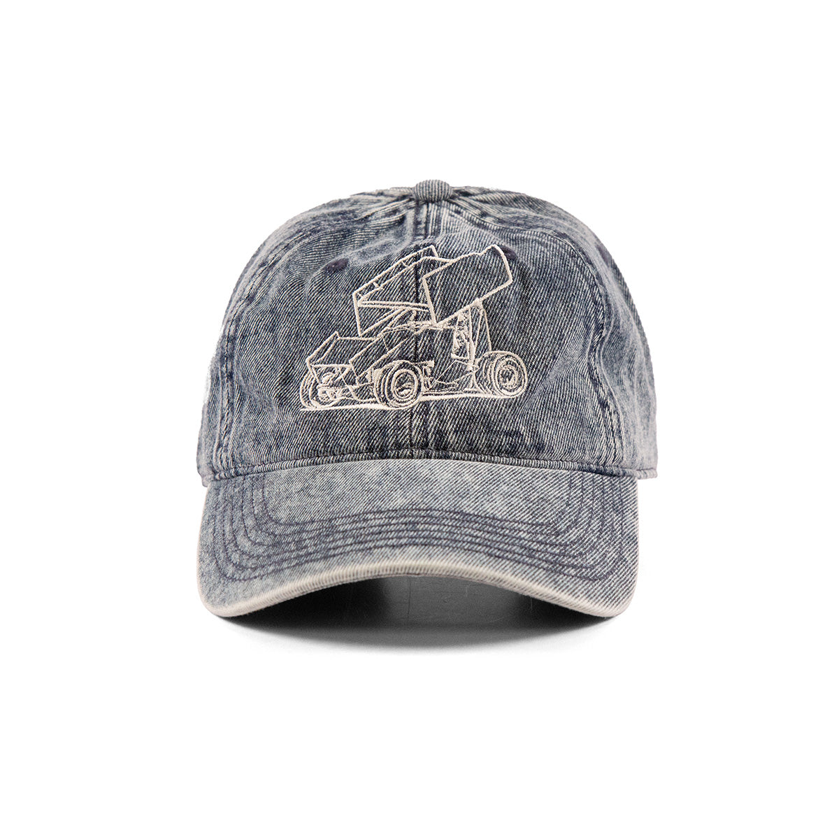Denim Sprint Car Dad Hat Show off your love for the dirt track with this vintage-style denim sprint car hat. Featuring a detailed white embroidered sprint car on distressed denim,...